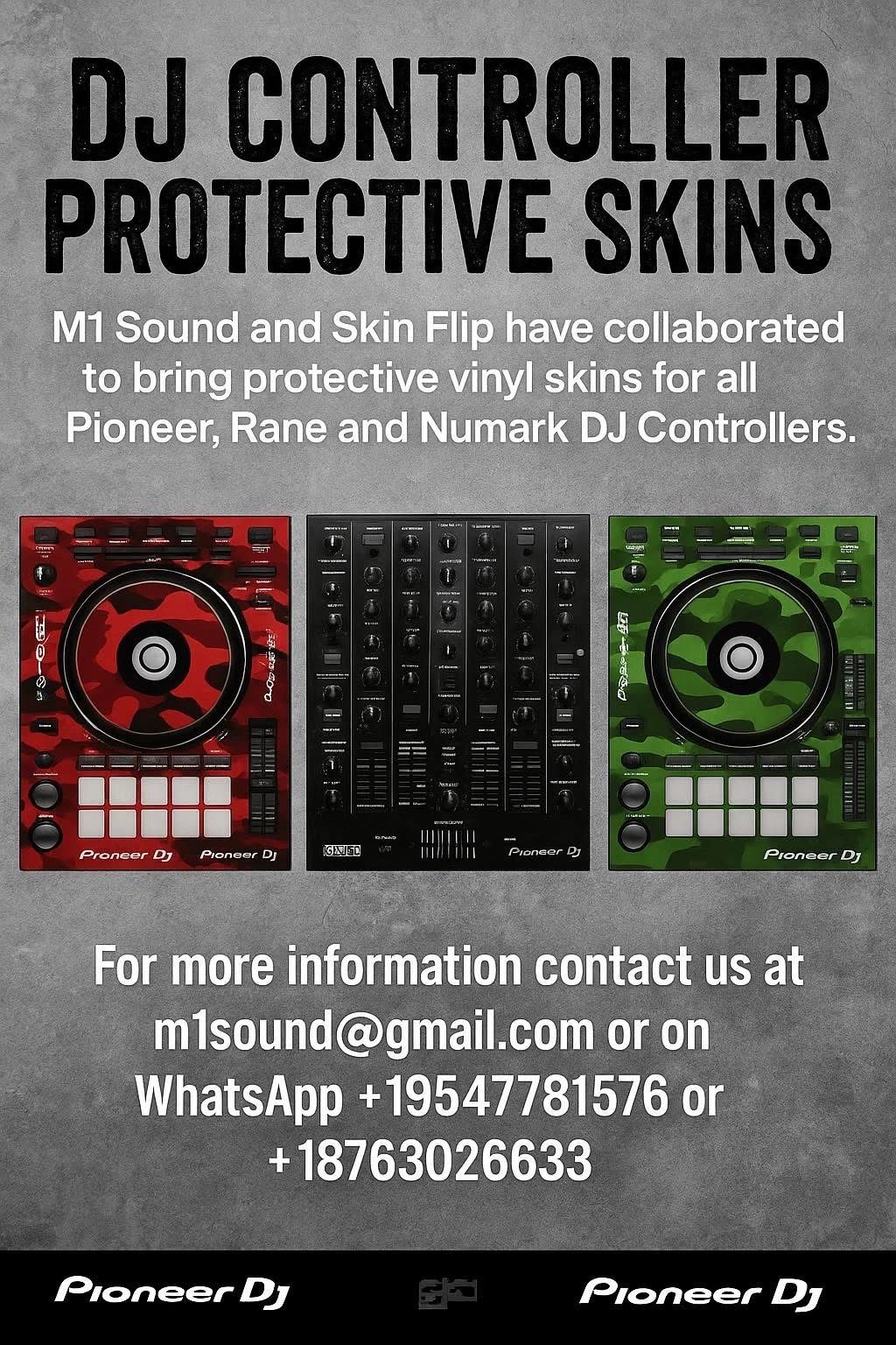 M1 Sound and Skin Flip have collaborated to bring protective vinyl skins for all Pioneer, Rane and Numark DJ Controllers.